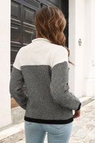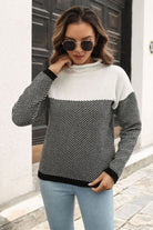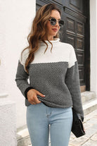 Two-Tone Mock Neck Dropped Shoulder Pullover Sweater