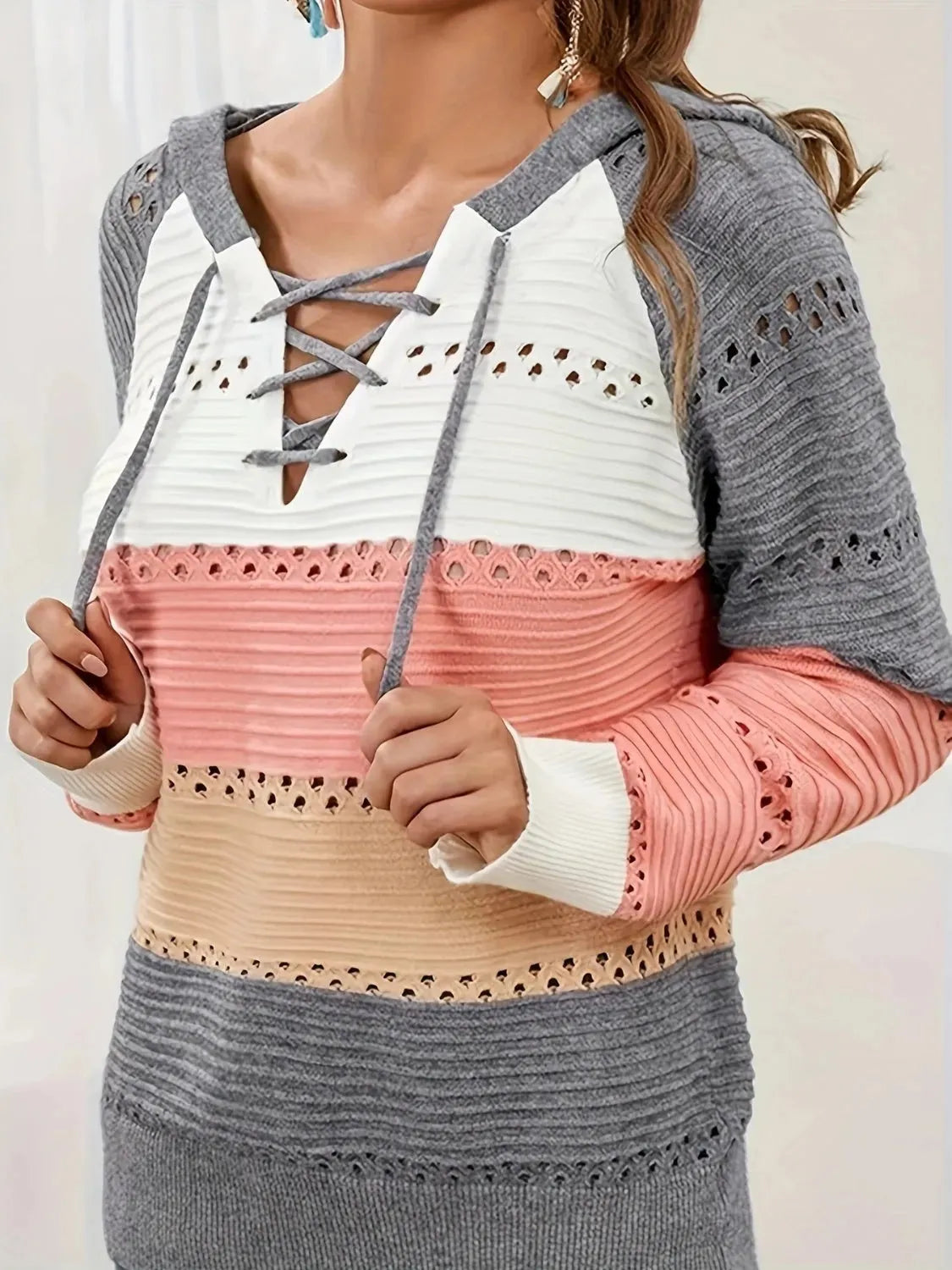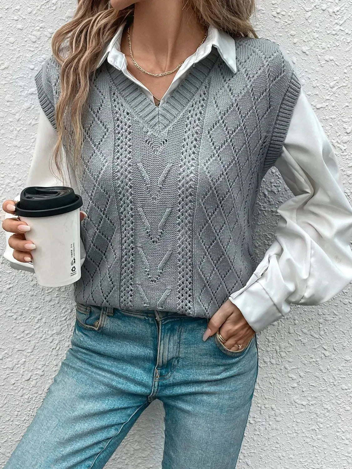 Openwork Open Front Long Sleeve Cardigan
