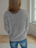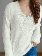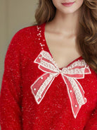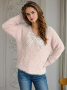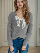 Bow Pearl Detail V-Neck Long Sleeve Sweater