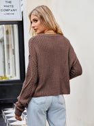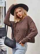 Cable-Knit Round Neck Dropped Shoulder Sweater