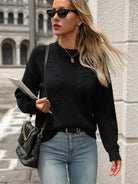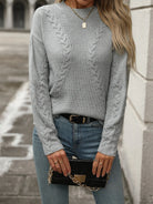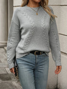 Cable-Knit Round Neck Long Sleeve Sweater