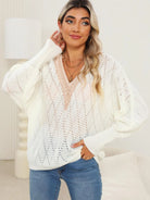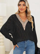 Lace Detail V-Neck Long Sleeve Sweater