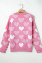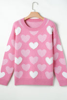 Pearl Trim Heart Round Neck Long Sleeve Sweater