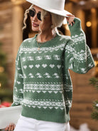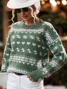 Perfee Geometric Round Neck Dropped Shoulder Sweater