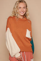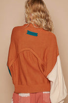 Color Block Roll Hem Hacci Sweater is a stylish and comfortable addition to your wardrobe. The color block design adds a modern touch, while the roll hem detail gives it a unique and trendy look. Made from soft Hacci fabric, this sweater is perfect for layering and will keep you cozy and chic all day long. Upgrade your outfit with this versatile and on-trend piece for any occasion.