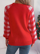 Reindeer Plaid Round Neck Long Sleeve Sweater