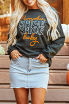 Dark Grey Halloween Pumpkin Spice Baby Graphic Textured Sweatshirt