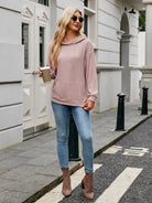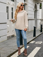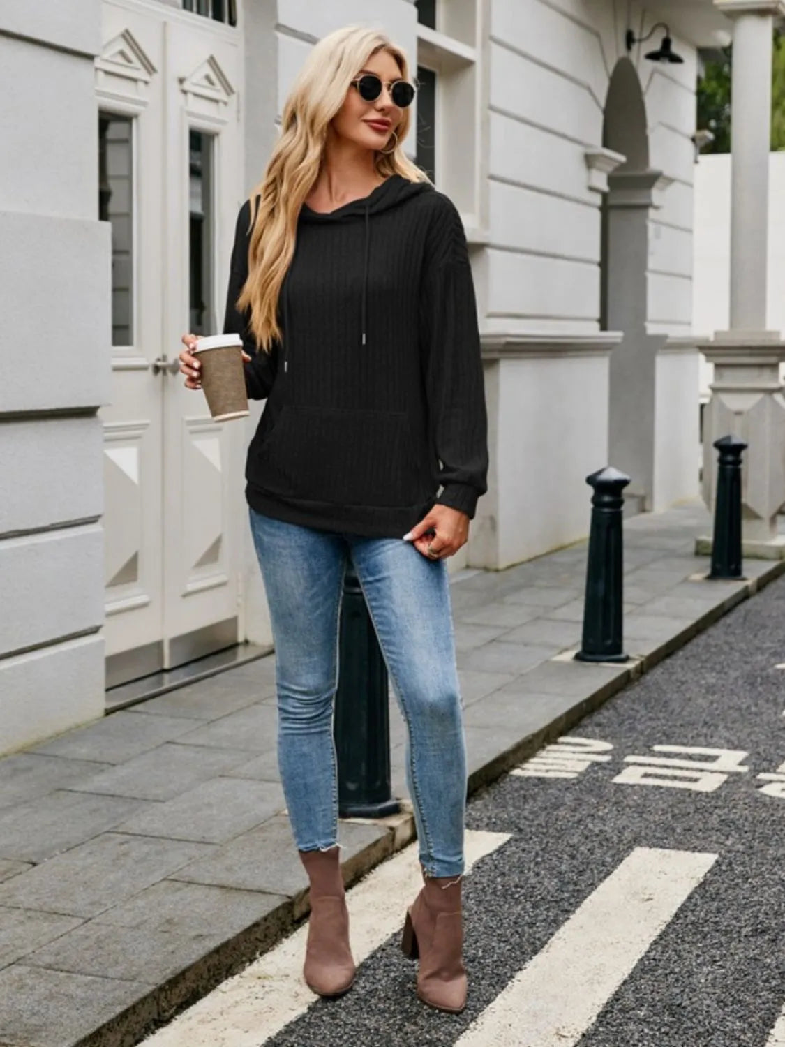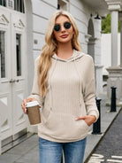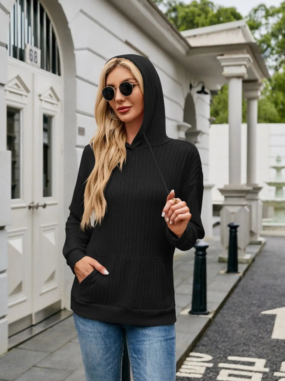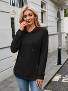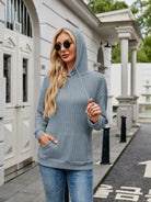 Ribbed Drawstring Long Sleeve Hoodie