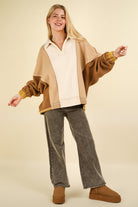 VERY J Color Block Johnny Collar Frenchy Terry Sweatshirt
