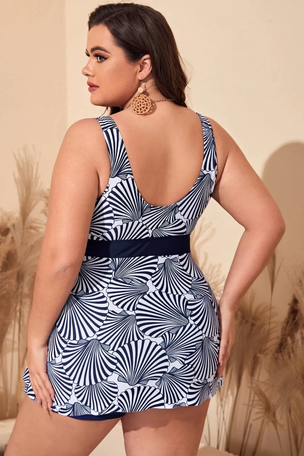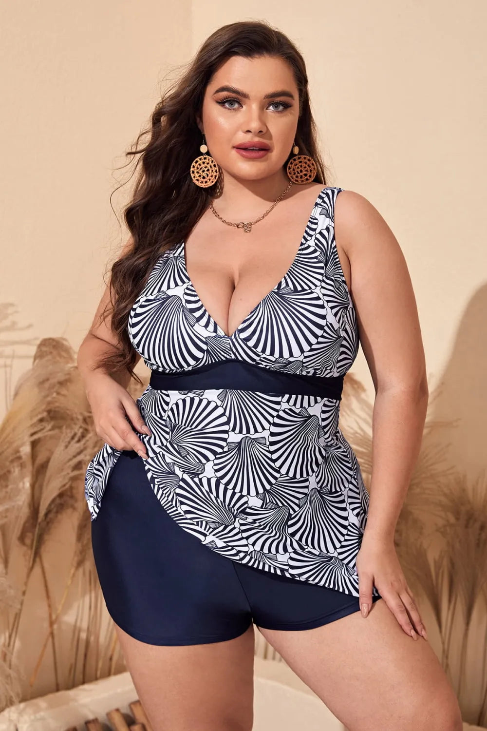 Plus Size Printed Sleeveless Top and Shorts Swim Set