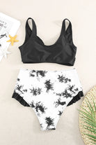 Two-Tone Crisscross Frill Trim Two-Piece Swimsuit