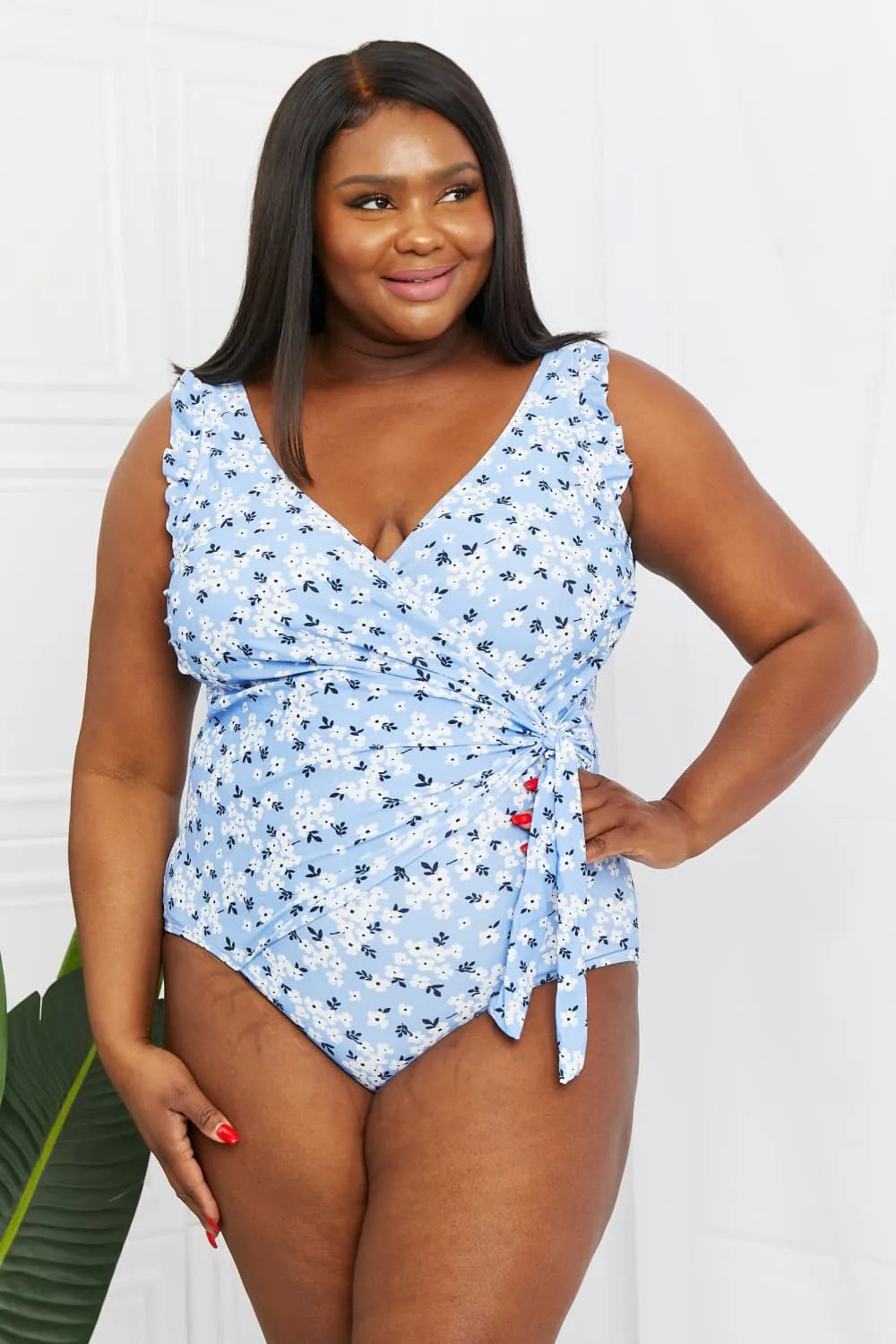 Marina West Swim Full Size Float On Ruffle Faux Wrap One-Piece in Blossom Blue