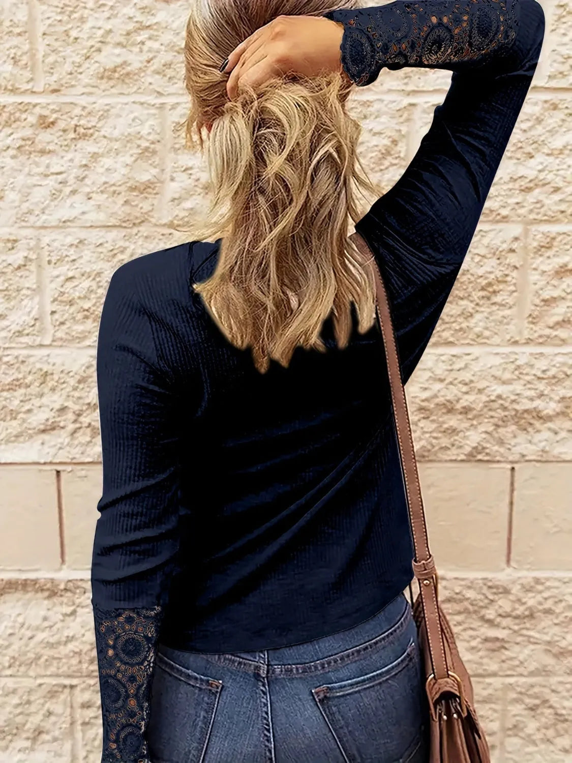 Half Button Lace Long Sleeve T-Shirt