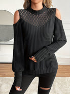 Lace Detail Mock Neck Cold Shoulder T-Shirt