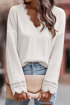 Lace Detail V-Neck Long Sleeve T-Shirt