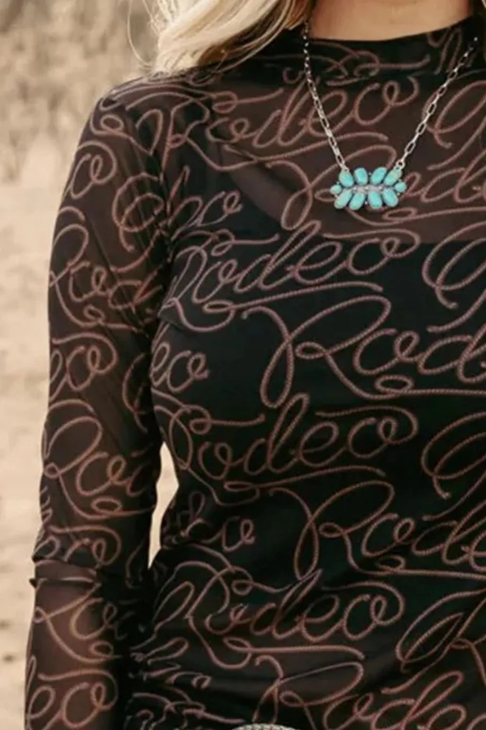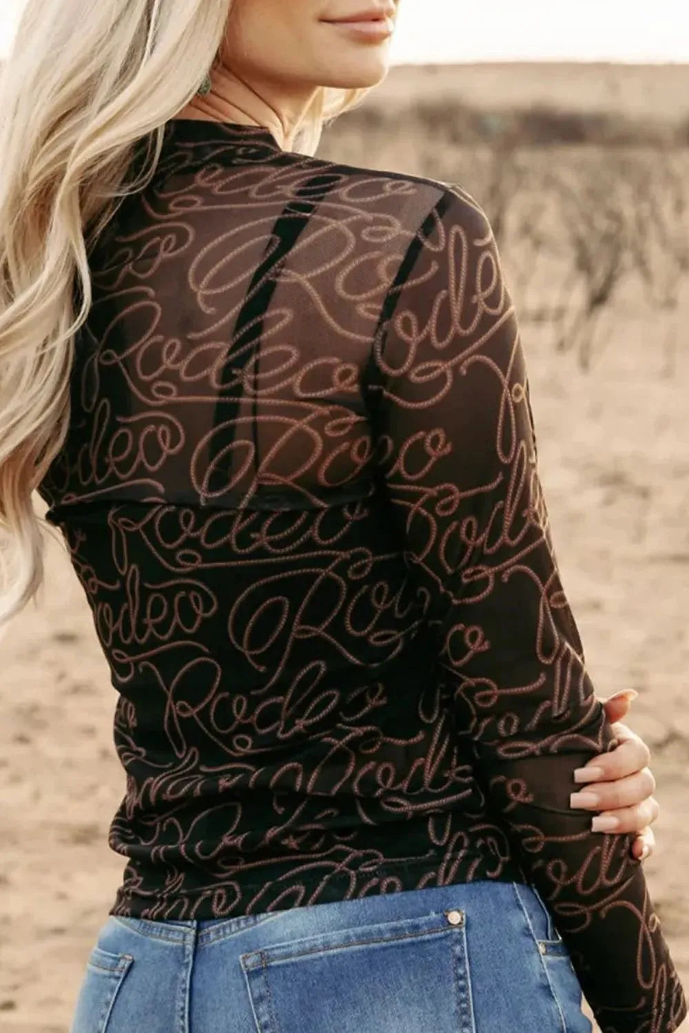 Letter Mock Neck Long Sleeve Top