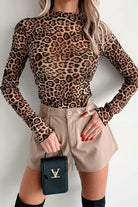 Lovelet Leopard Mock Neck Long Sleeve T-Shirt