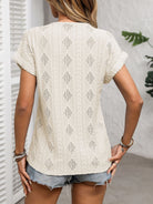 Openwork V-Neck Short Sleeve T-Shirt