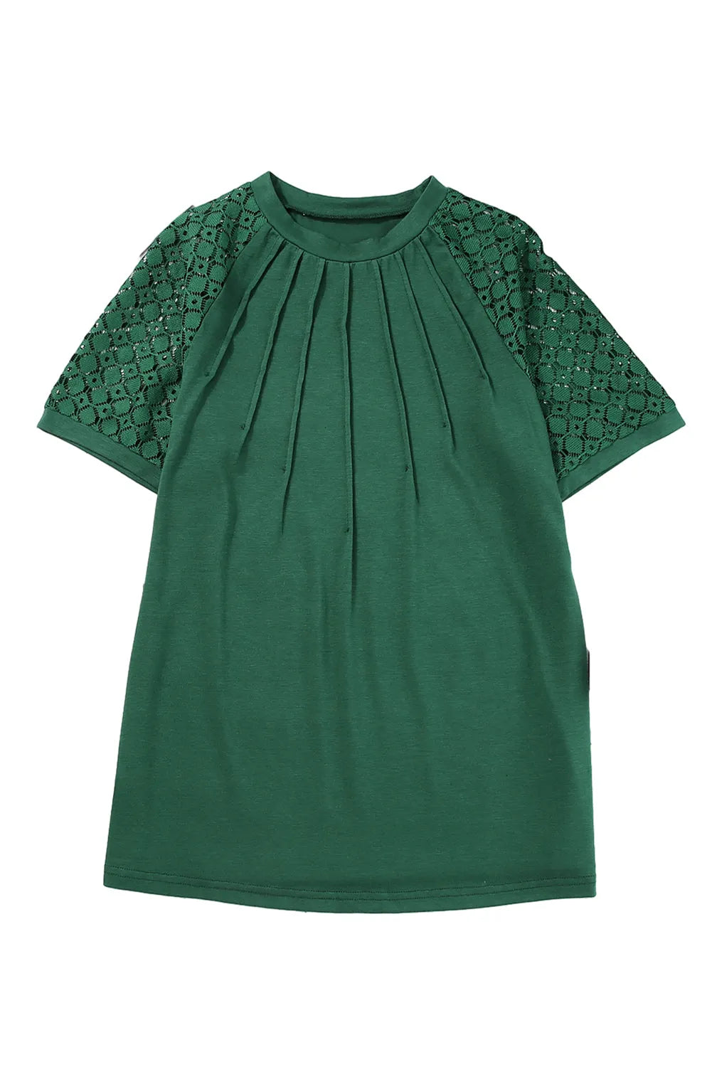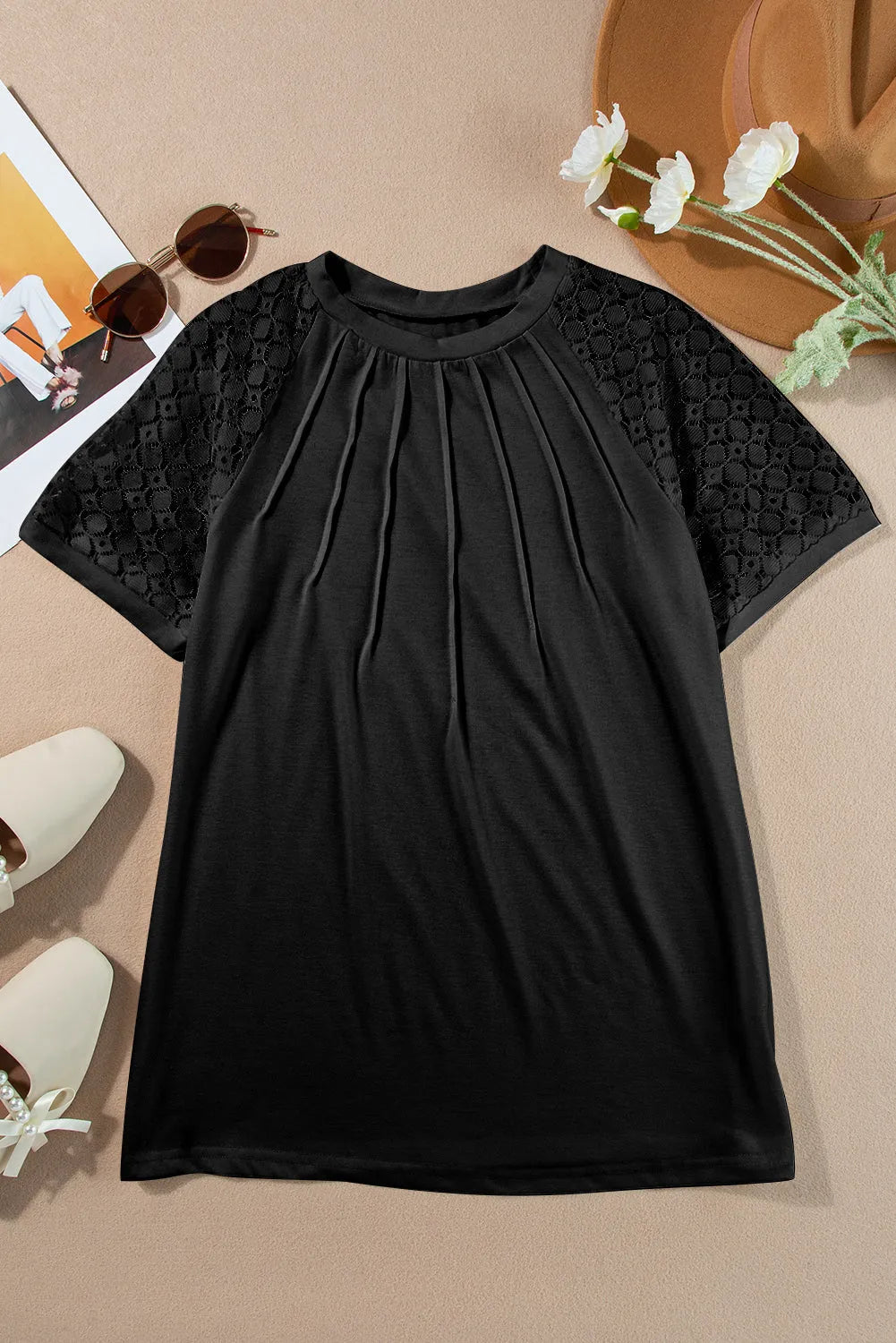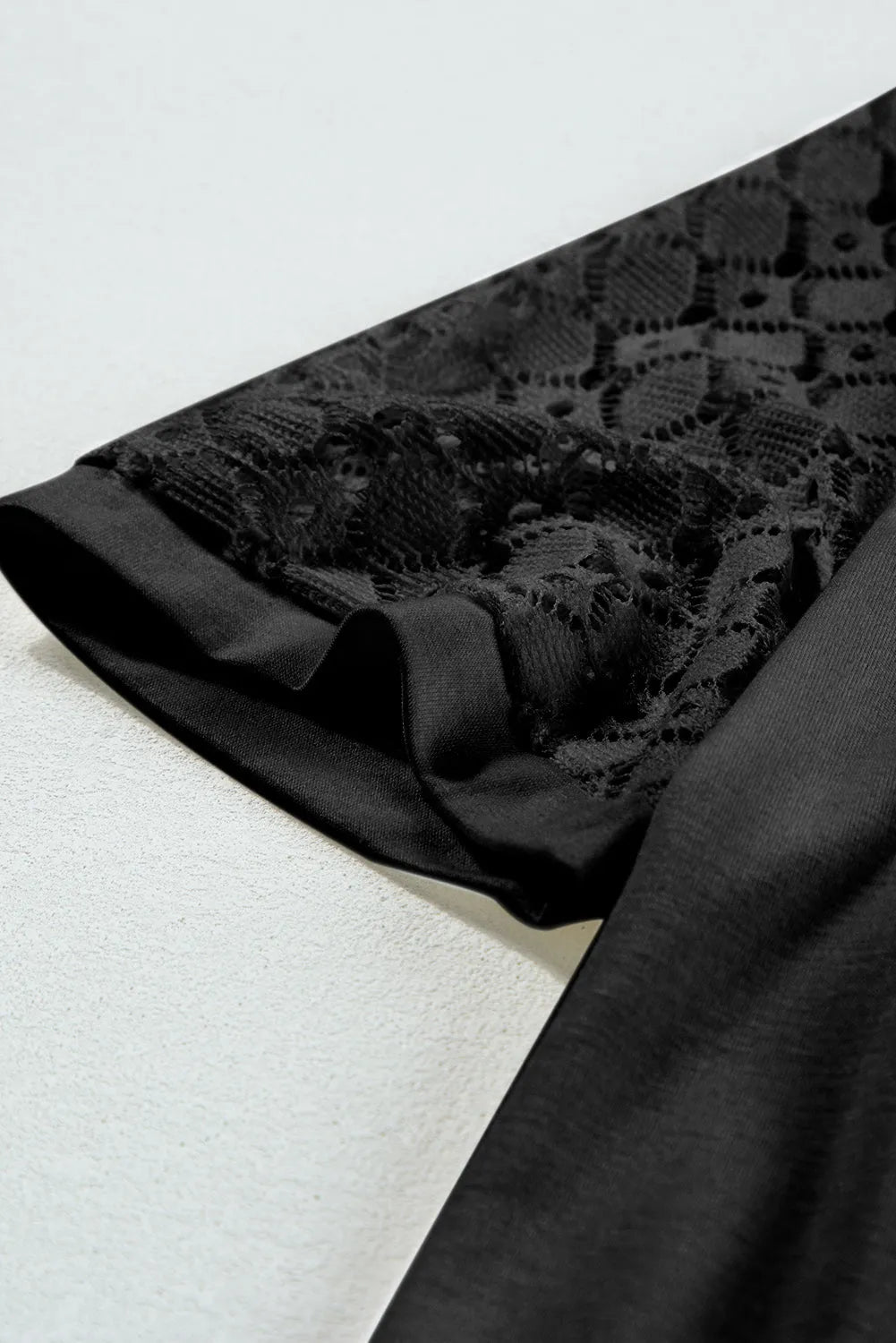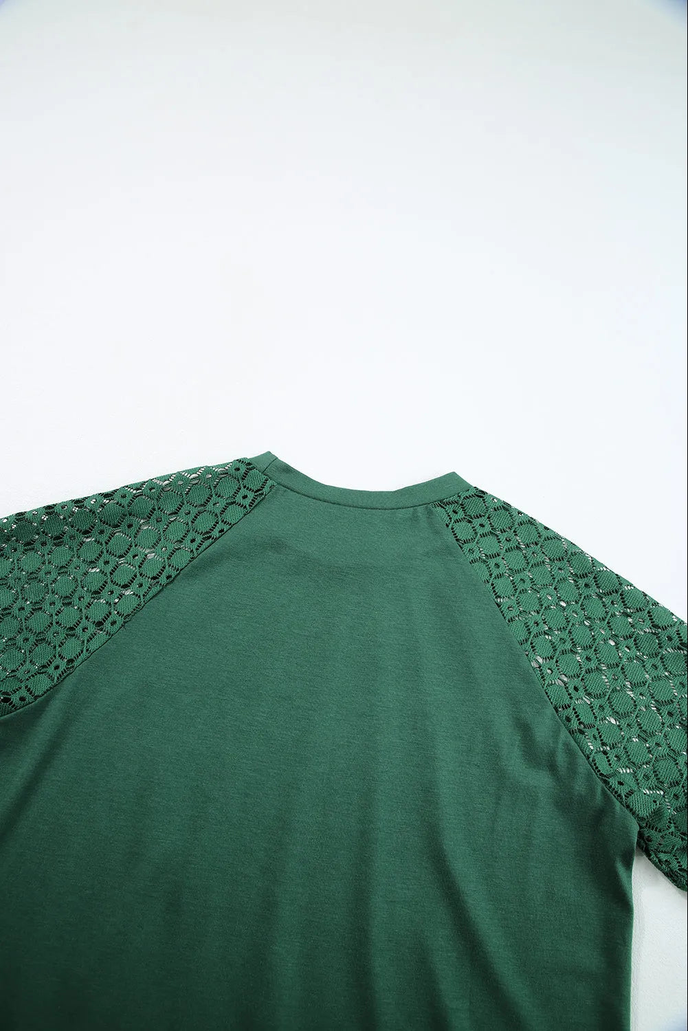 This casual tee combines delicate lace detailing with a rebellious raglan sleeve design