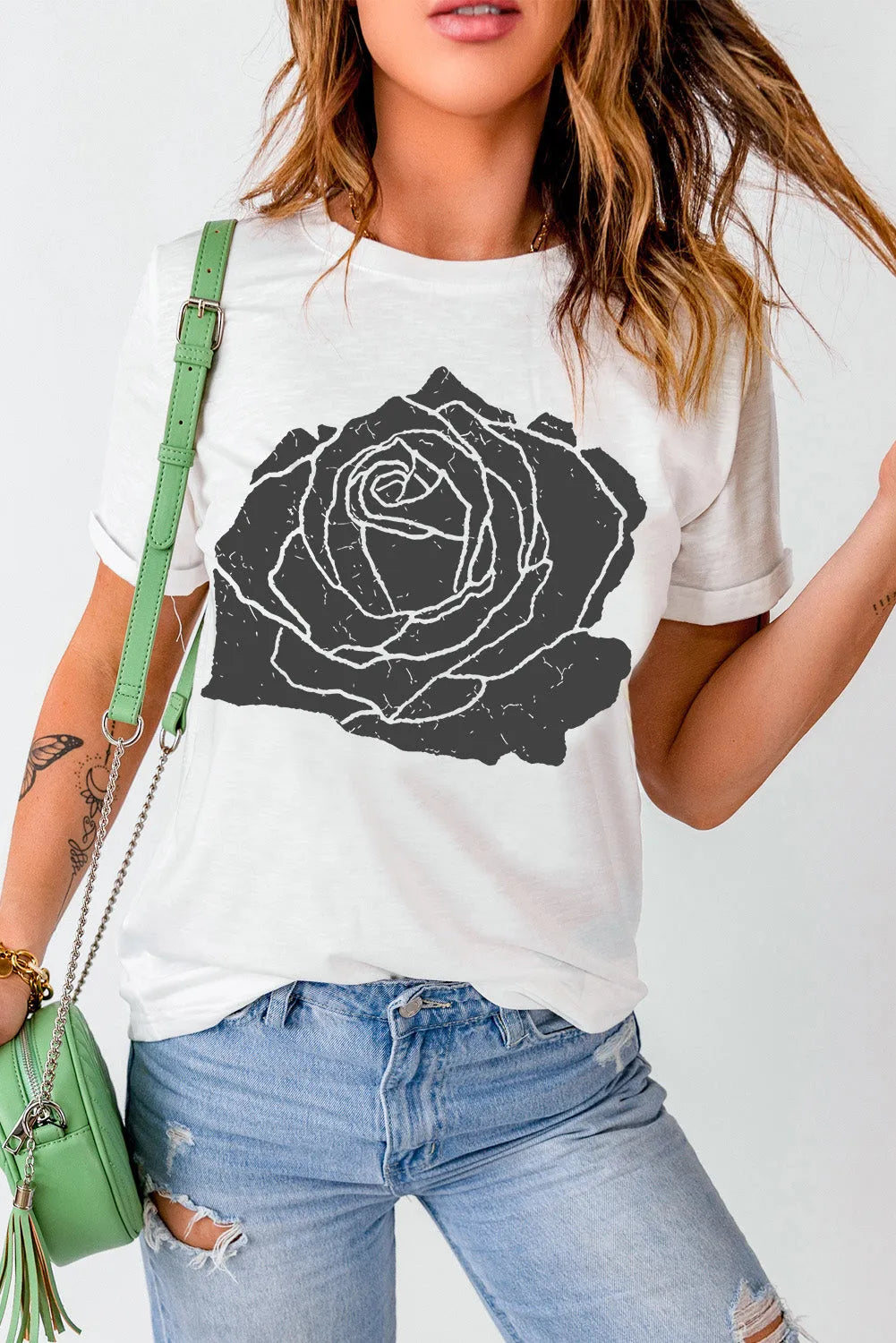 Rose Graphic Round Neck Short Sleeve T-Shirt