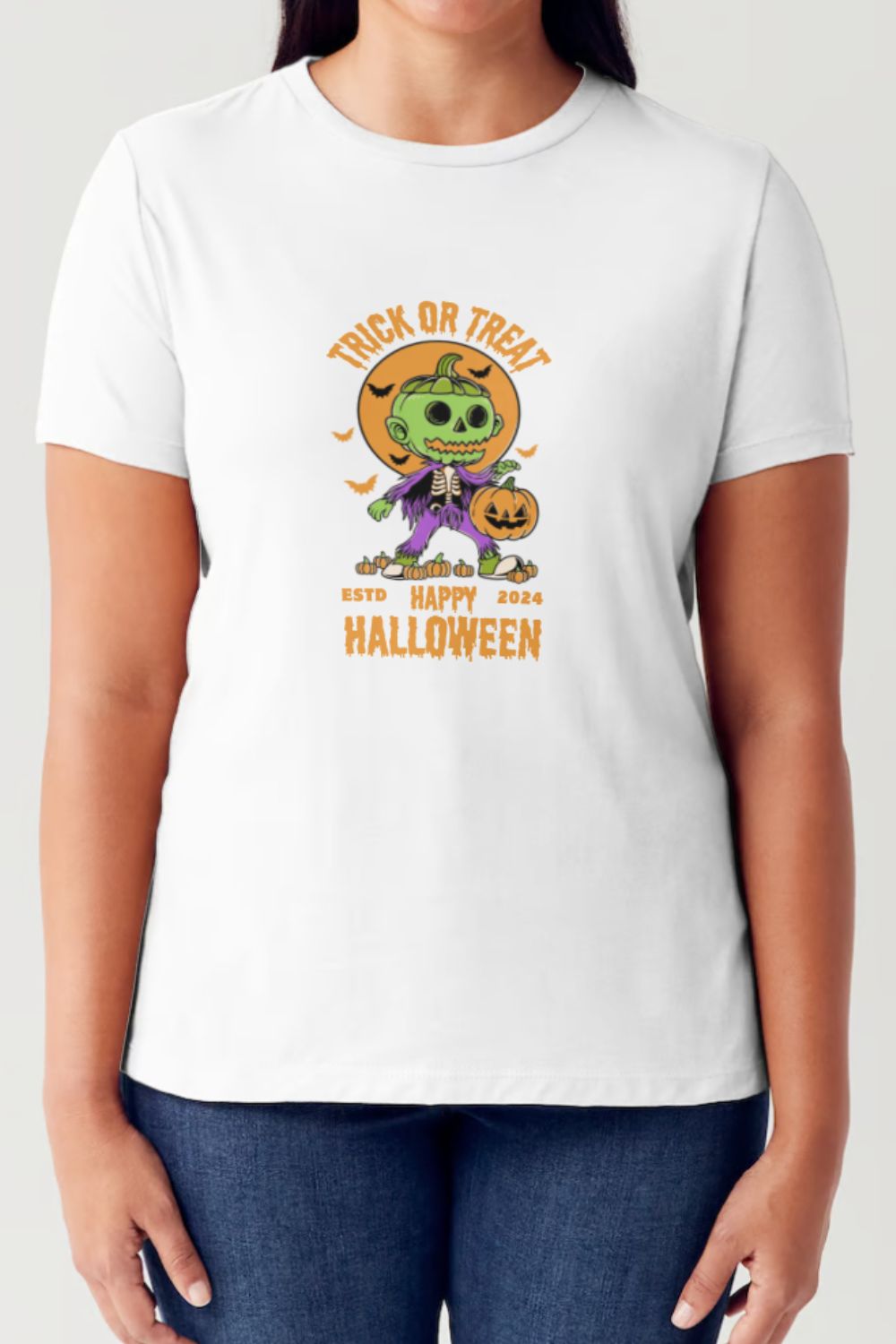The "Trick or Treat" round neck short sleeve tubular T-shirt is a perfect choice for Halloween festivities! Featuring a fun and festive graphic, this shirt captures the playful spirit of the season. Made from soft, breathable fabric, it ensures comfort for all-day wear. The round neck and tubular design provide a relaxed fit, making it ideal for casual outings, parties, or trick-or-treating. Pair it with jeans or leggings for a fun and easy Halloween look!