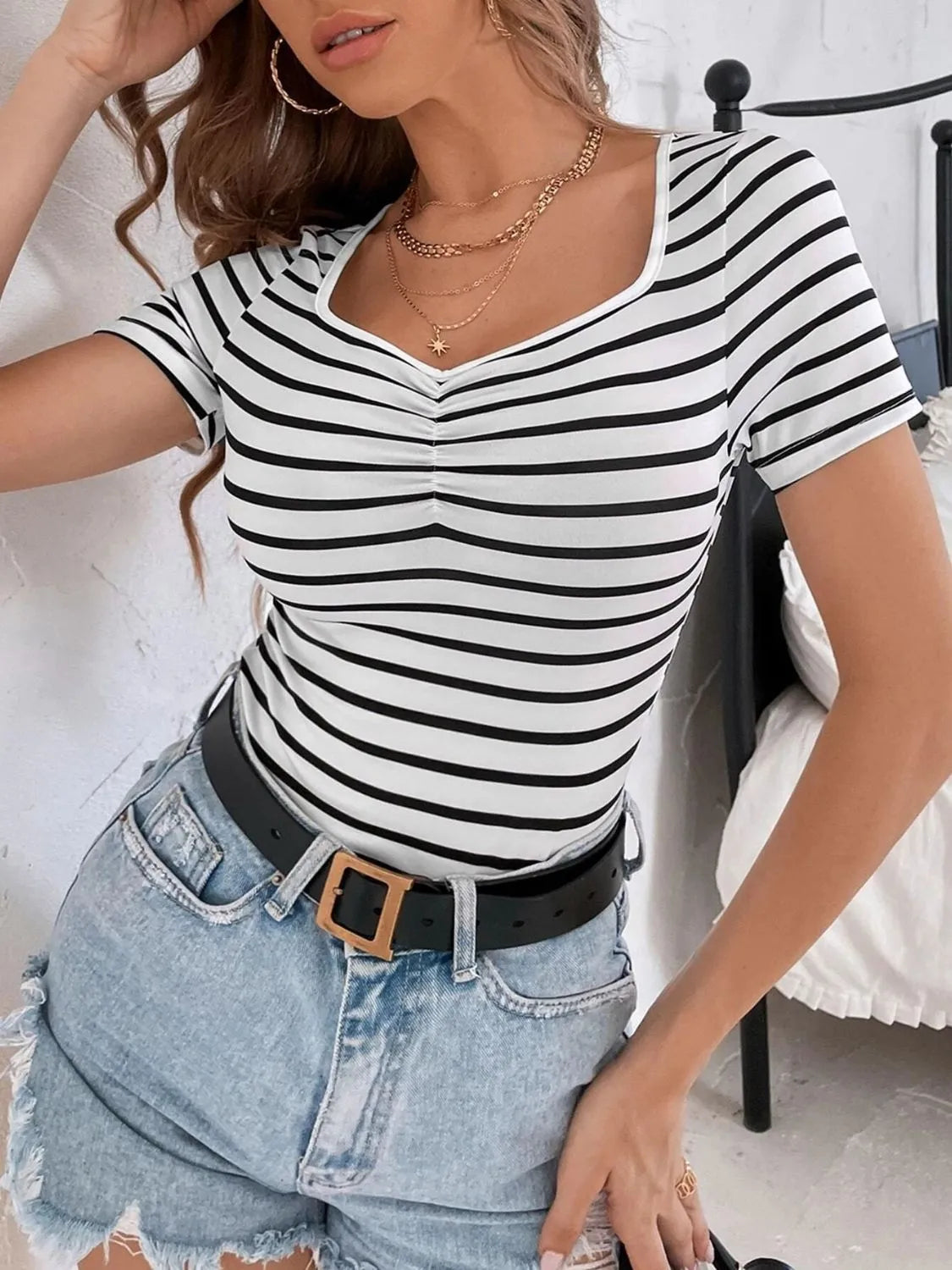 Striped V-Neck Short Sleeve T-Shirt