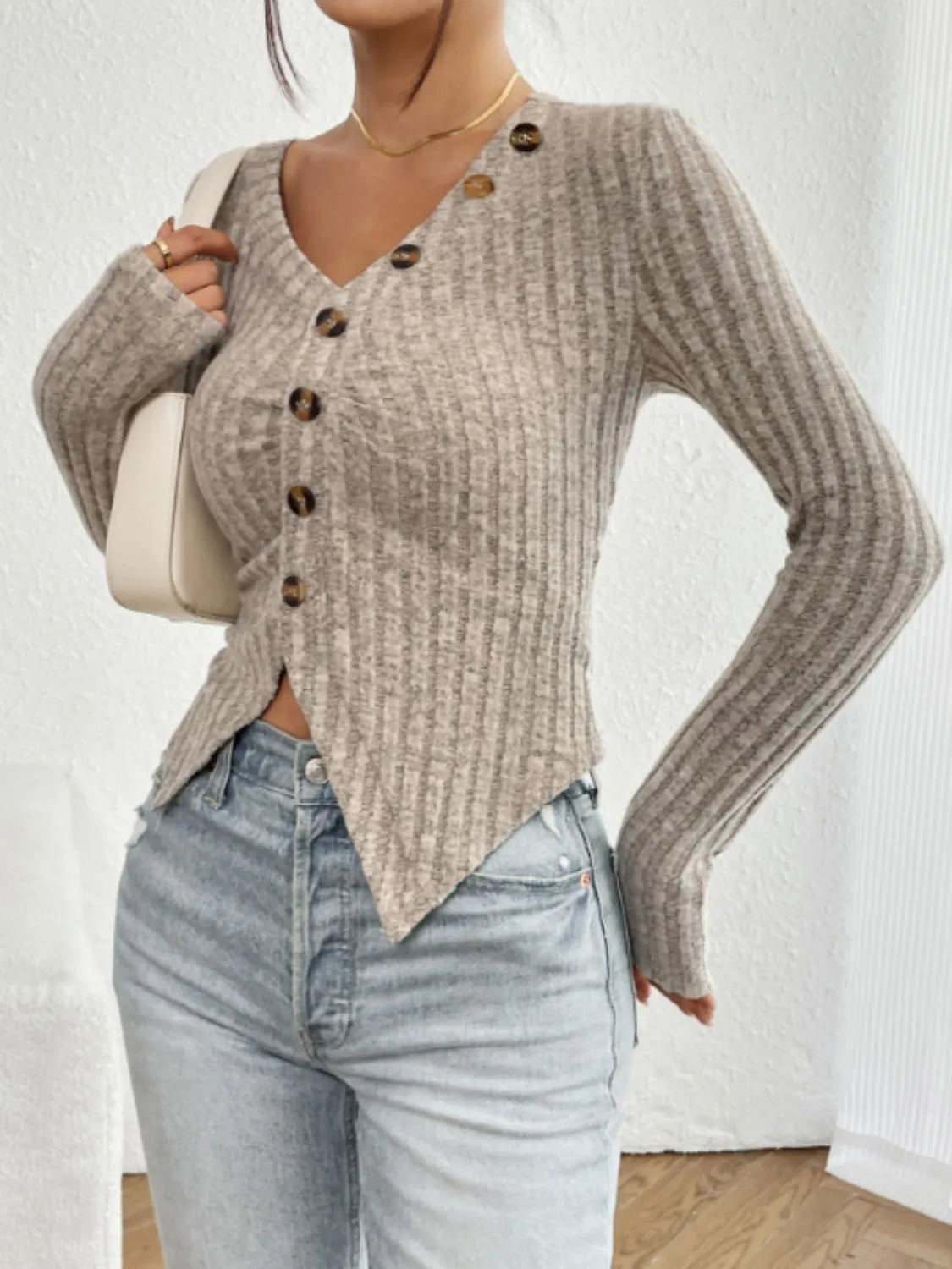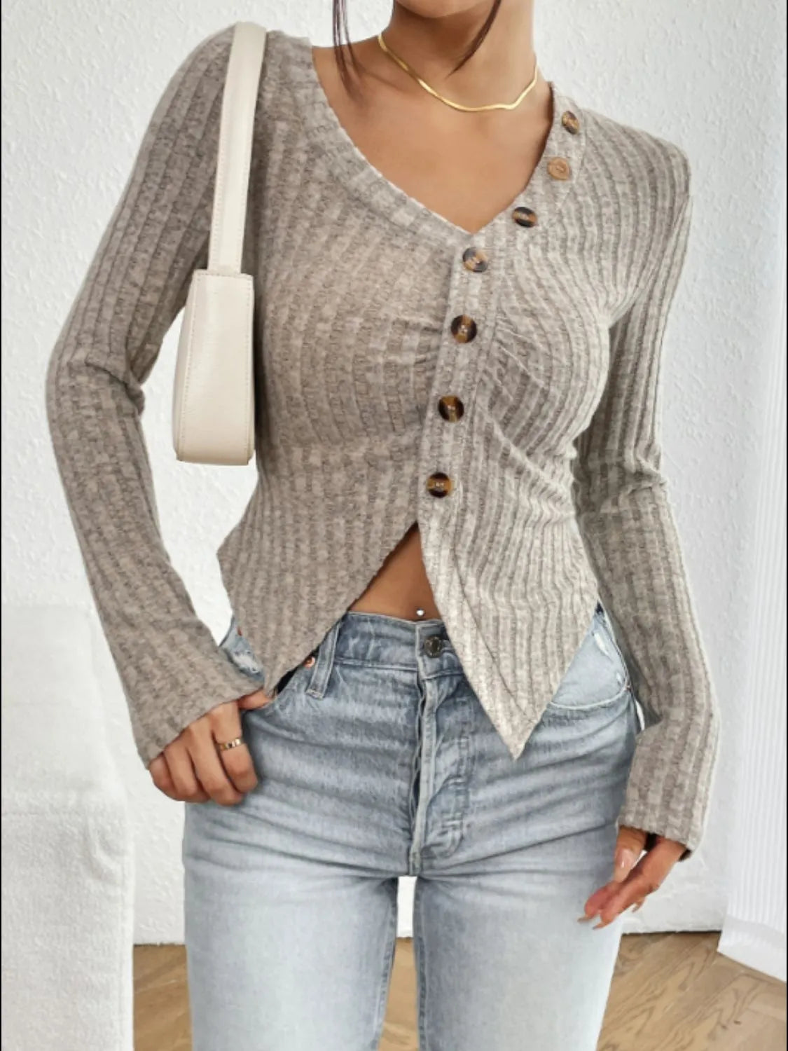 - Features: Decorative Button, Slit