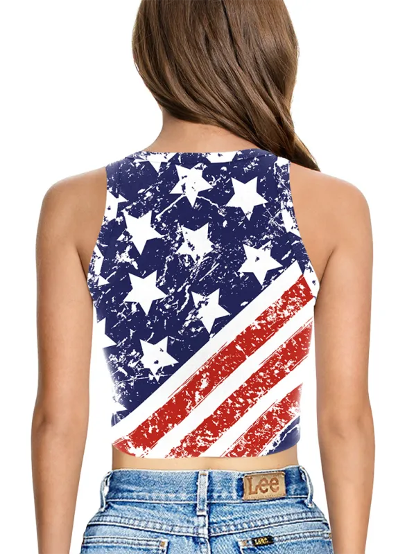 American Independence Day Flag Digital Print Sleeveless Off Shoulder Tank Top