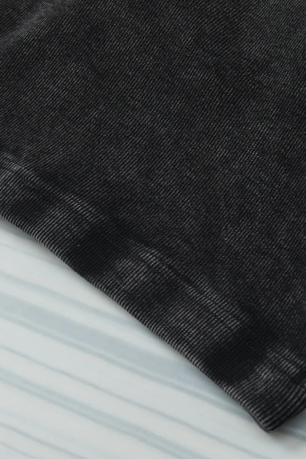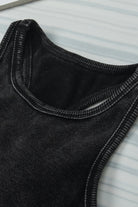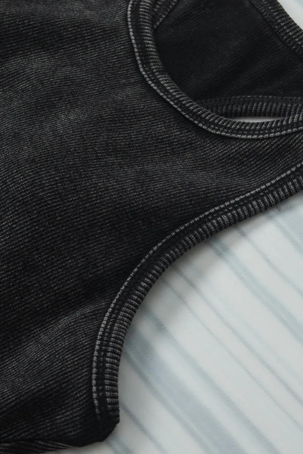 Black Ribbed Mineral Wash Racerback Cropped Tank Top