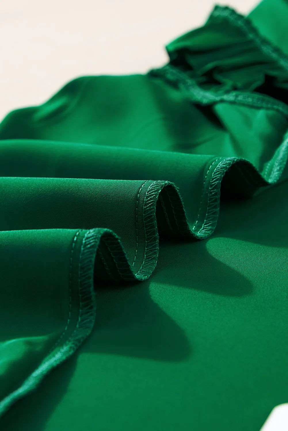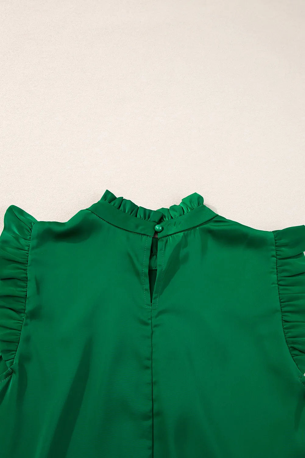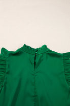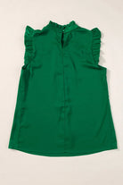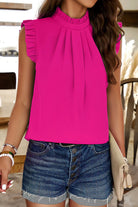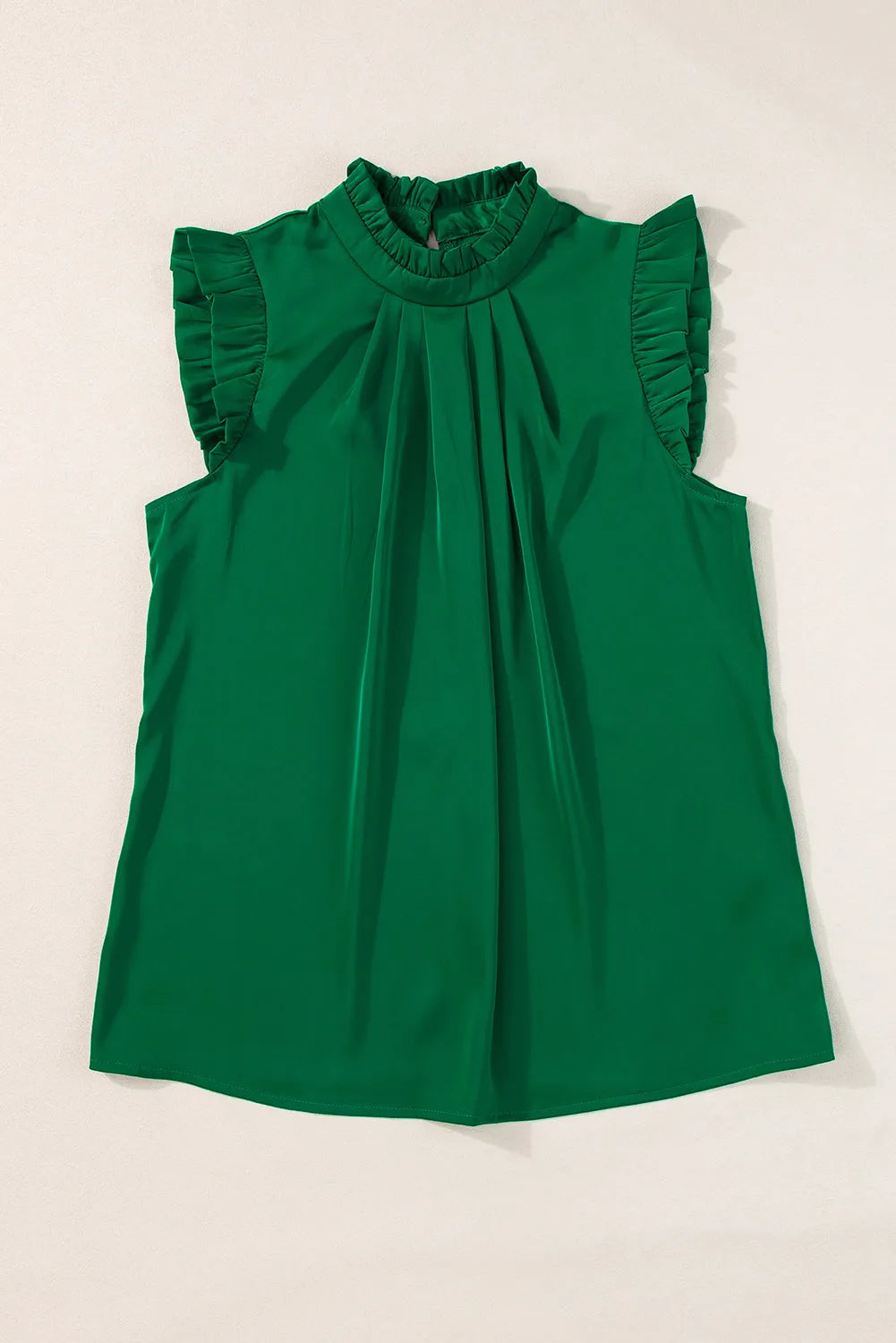 Bright Green Pleated Mock Neck Frilled Trim Sleeveless Top