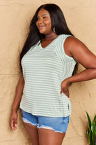 Doublju Full Size Striped Sleeveless V-Neck Top