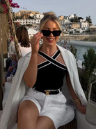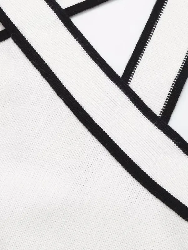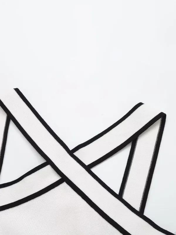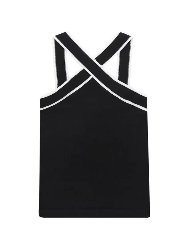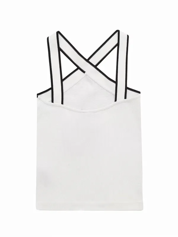 Feminine slim fit inner contrast knitted suspender commuting vest top T-shirt