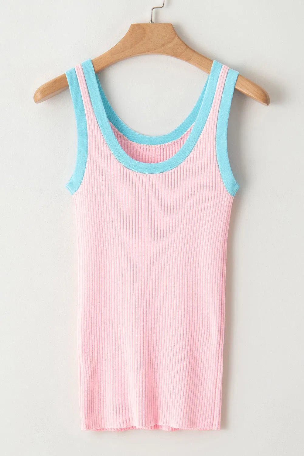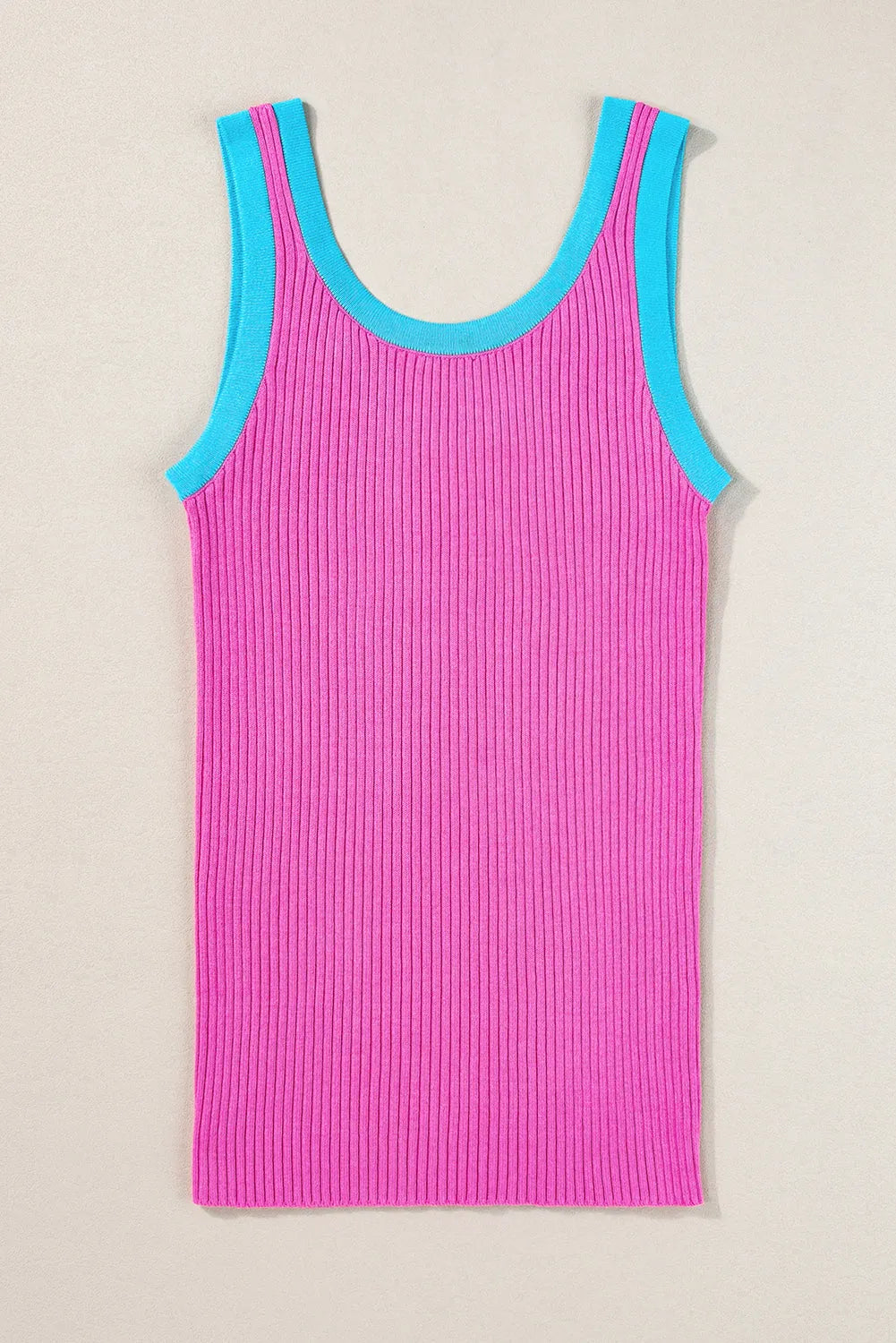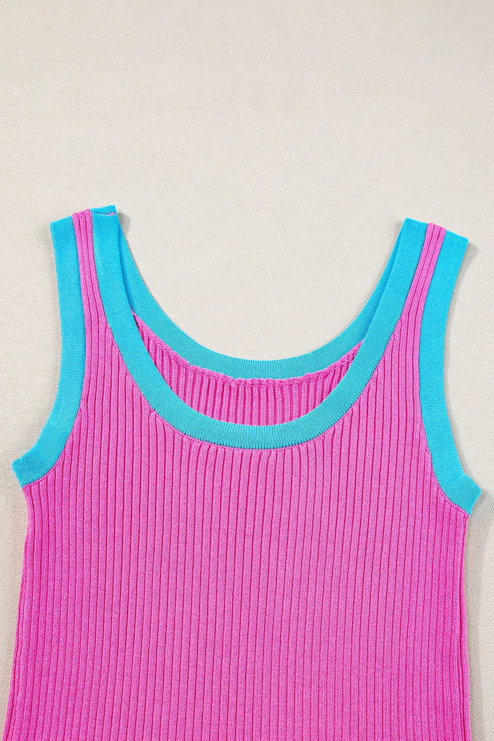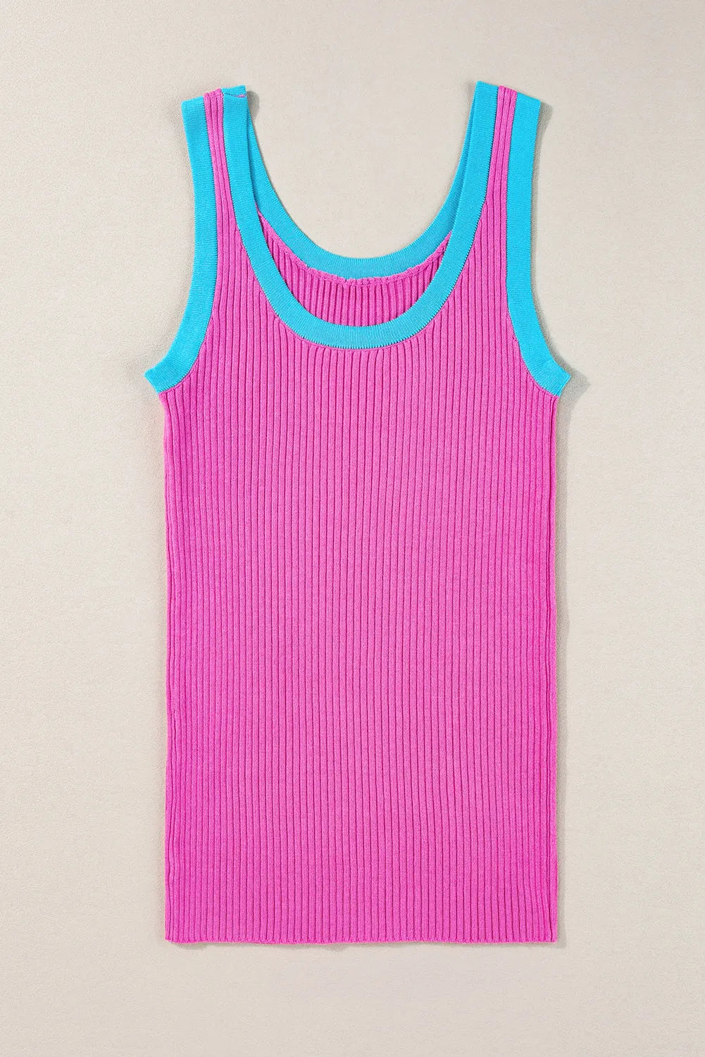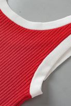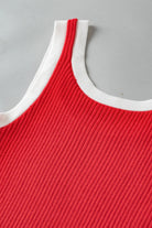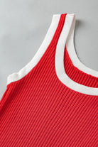 Fiery Red Colorblock Edge Ribbed Knit U Neck Tank Top