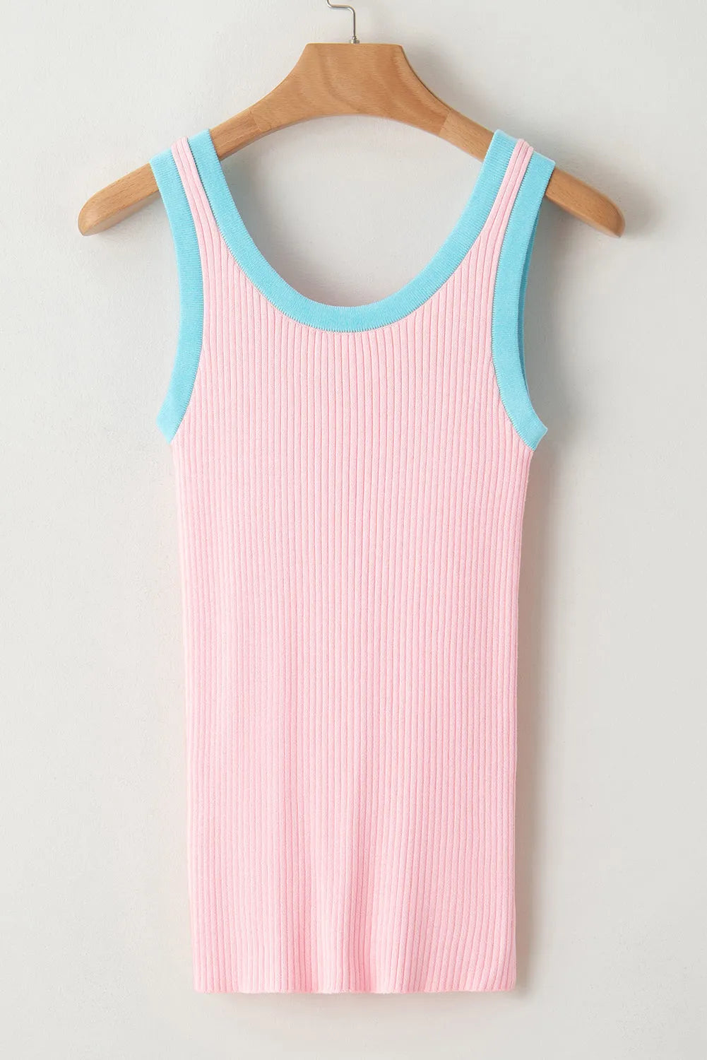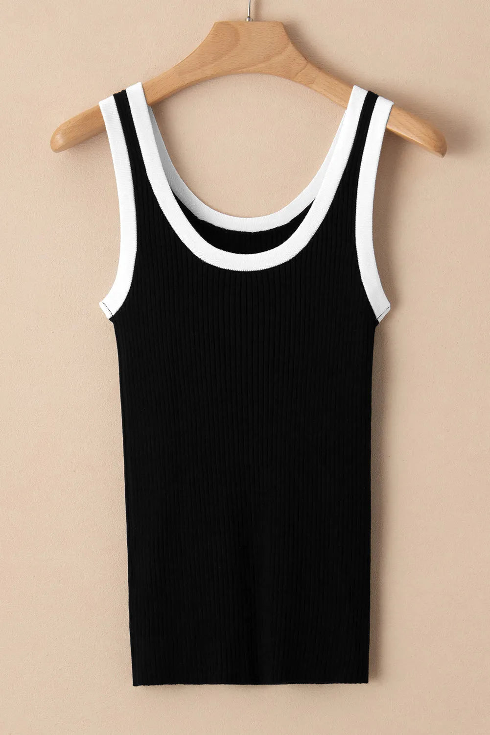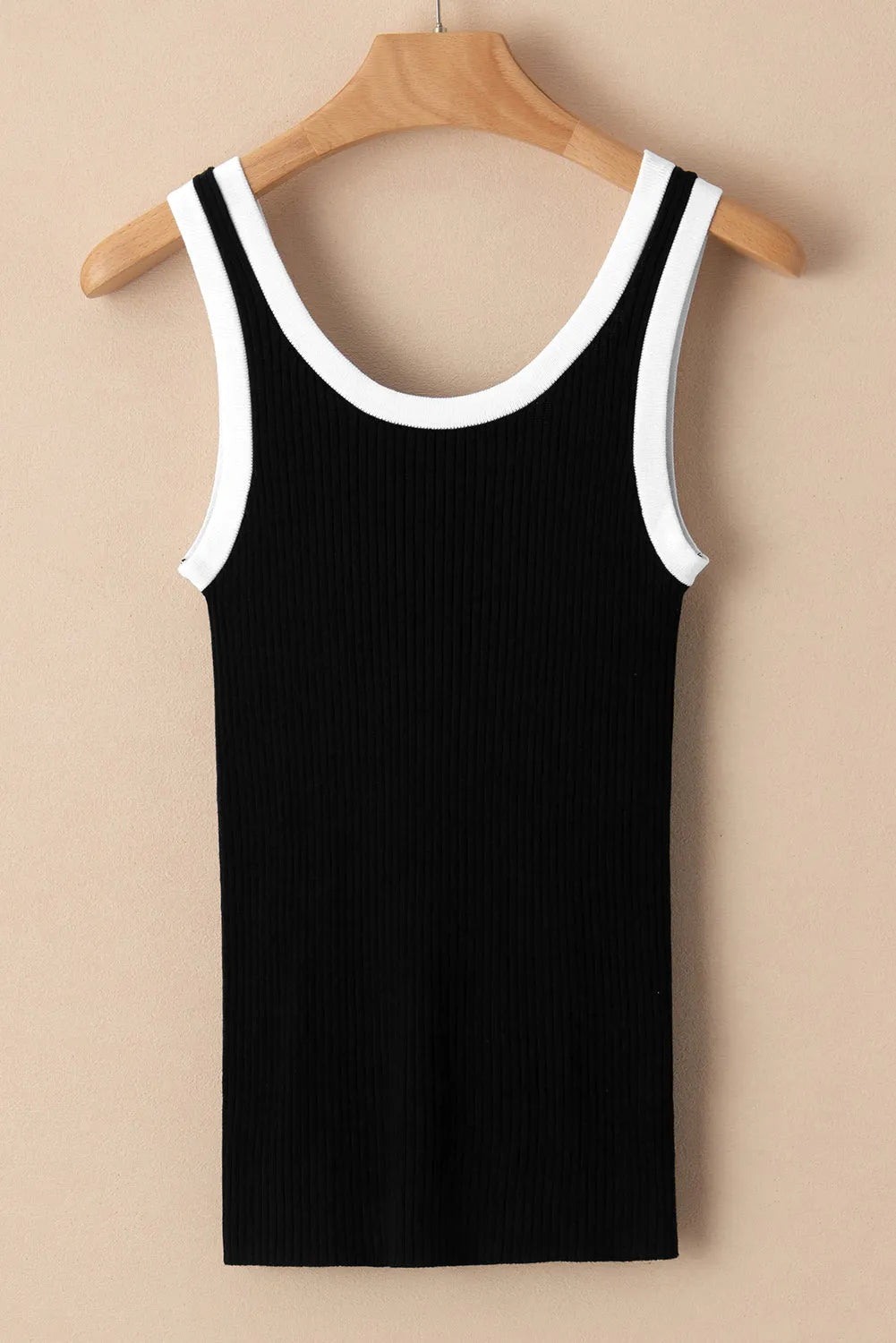 Fiery Red Colorblock Edge Ribbed Knit U Neck Tank Top