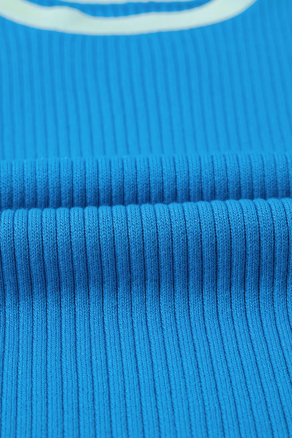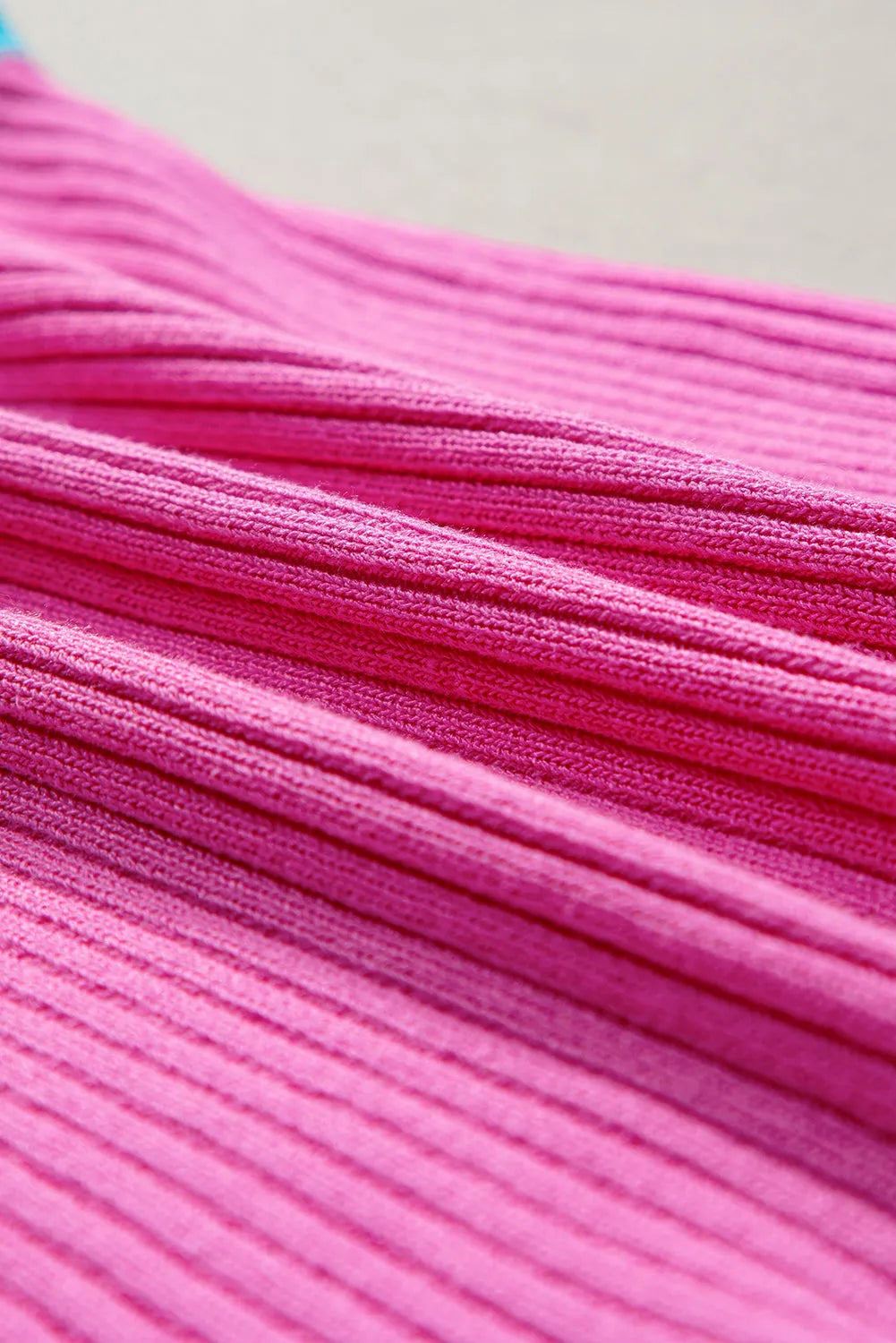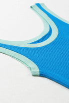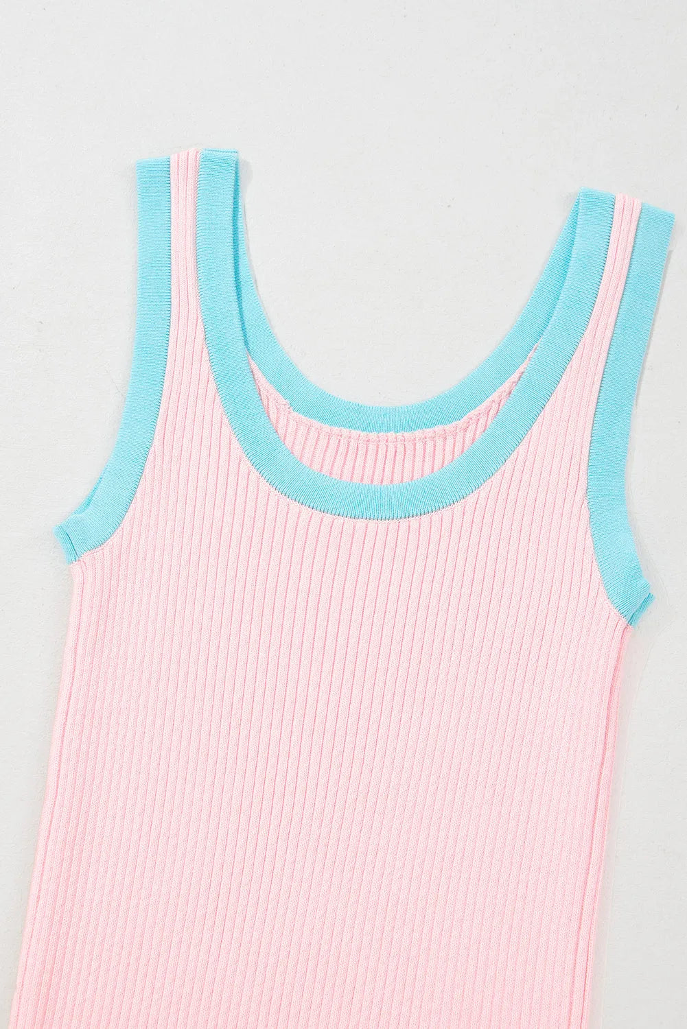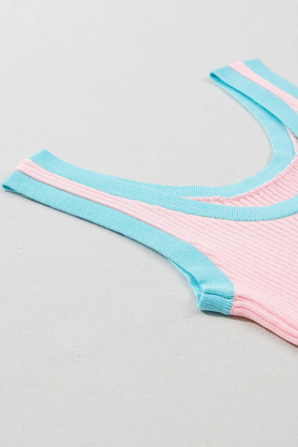 Fiery Red Colorblock Edge Ribbed Knit U Neck Tank Top