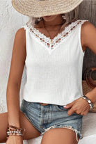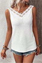 Lace Detail Textured V-Neck Tank