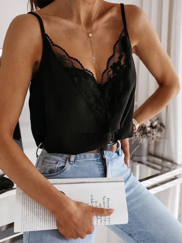 New lace stitching V-neck low-cut slim-fit small suspenders