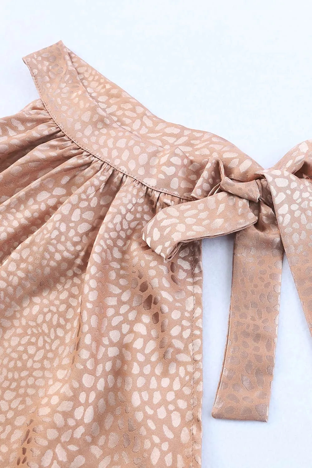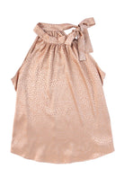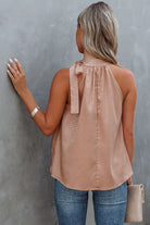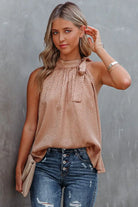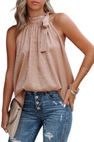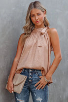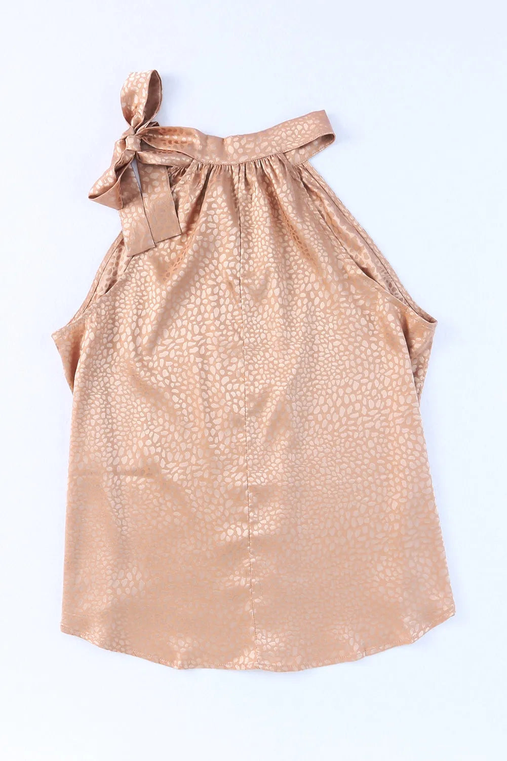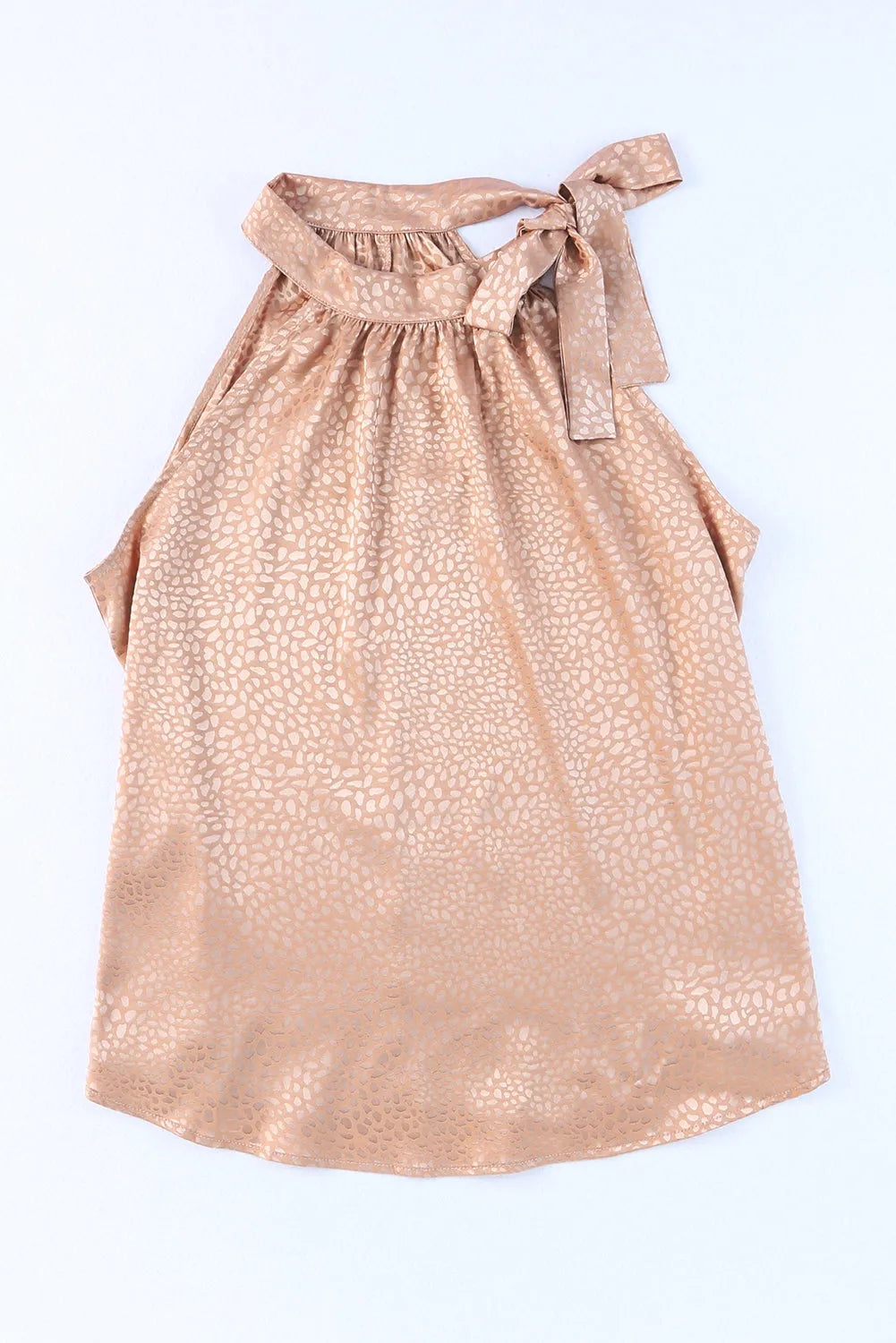Pink Sleeveless Tie Mock Neck Leopard Tank Top