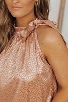 - The mock neck withtie gives this animal print tank top a bit of elegance