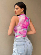 Printed Mock Neck Ruched Tank