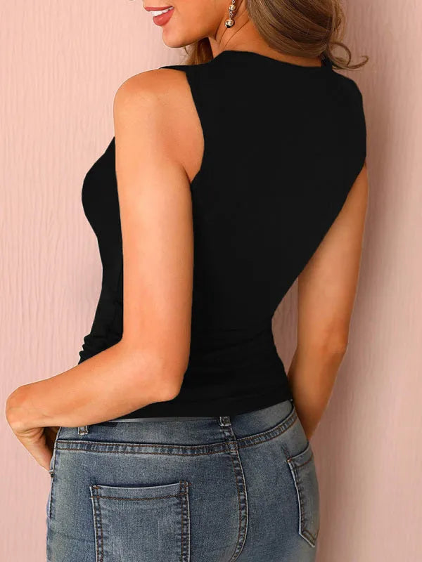 Solid color shoulder hollow sexy knitted halter neck vest women's top
