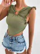 Women's irregular lower back -back lace -up ruffled upper