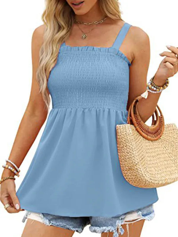 Women's Solid Color Camisole Ruffle Pleated Tank Top