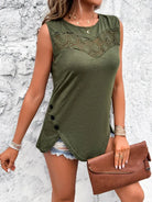 Women's solid color lace sleeveless round neck tank top