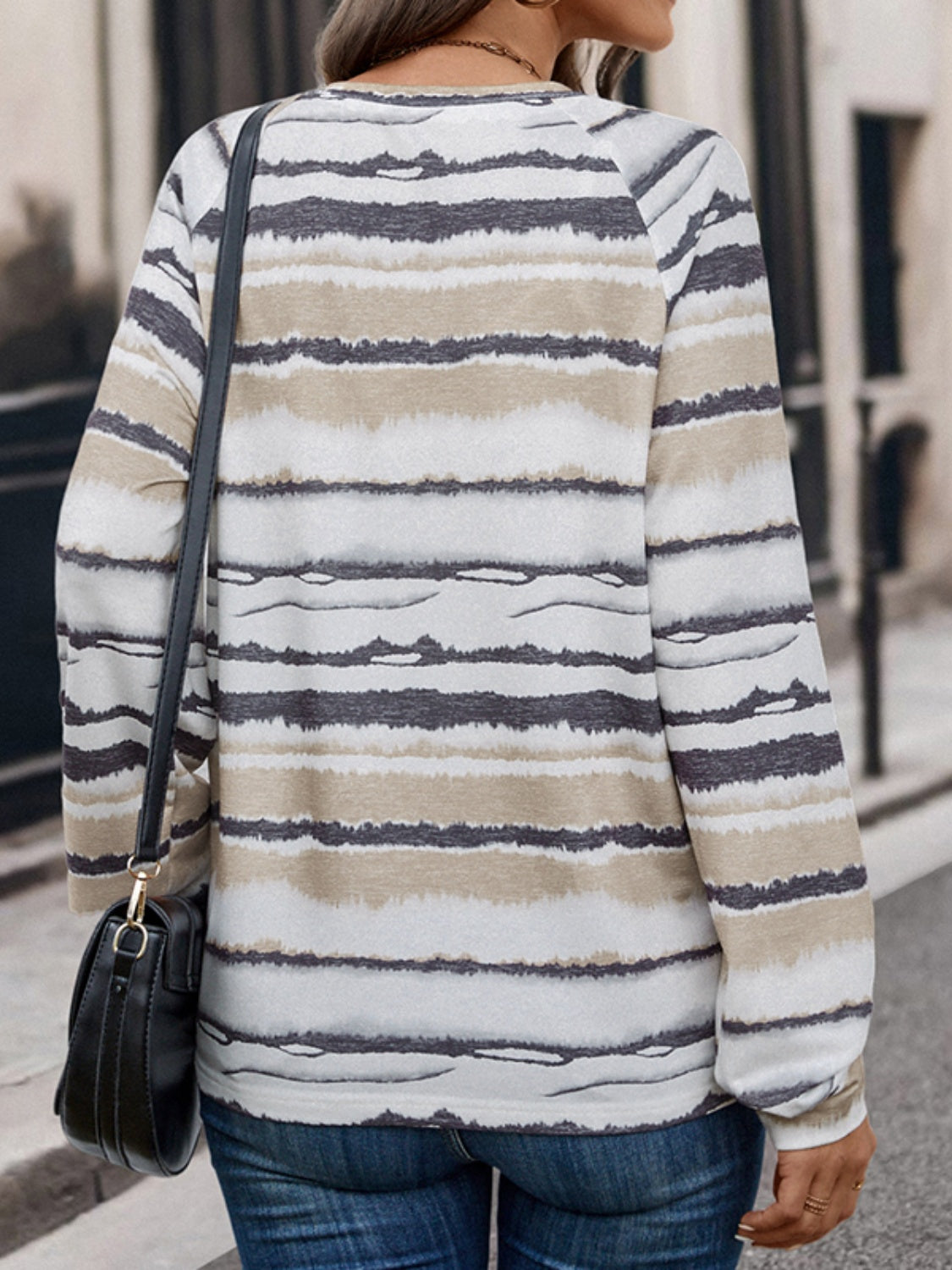 Contrast Stripes V-Neck Long Sleeve T-Shirt