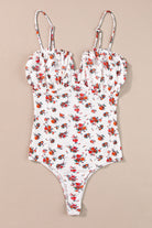 Floral Frilled Trim Spaghetti Straps Bodysuit
