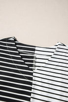 Stripe Two Tone Colorblock V-Neck T-Shirt