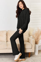 Basic Bae Full Size Ribbed Drawstring Hooded Top and Straight Pants Set