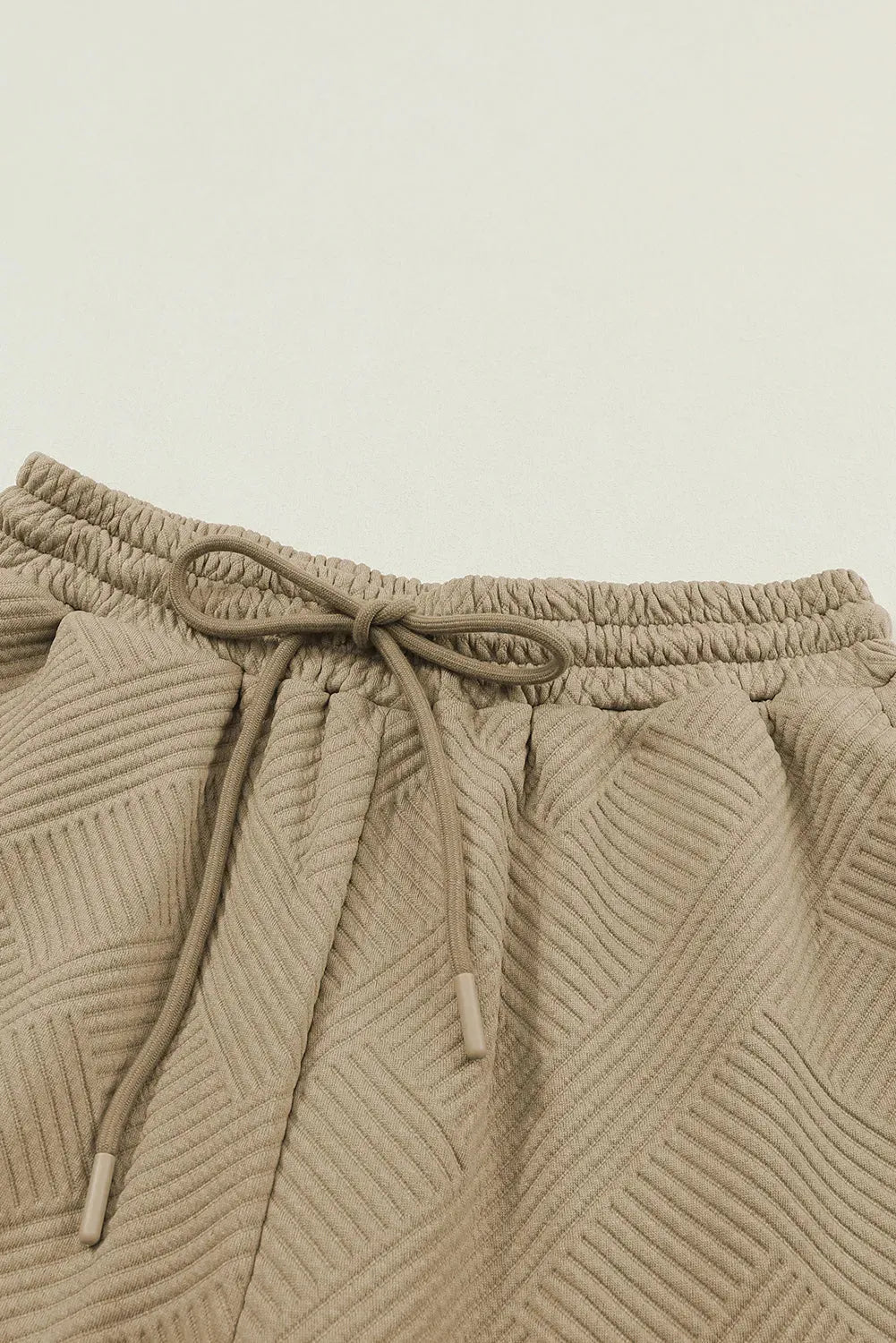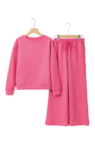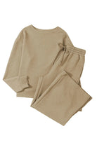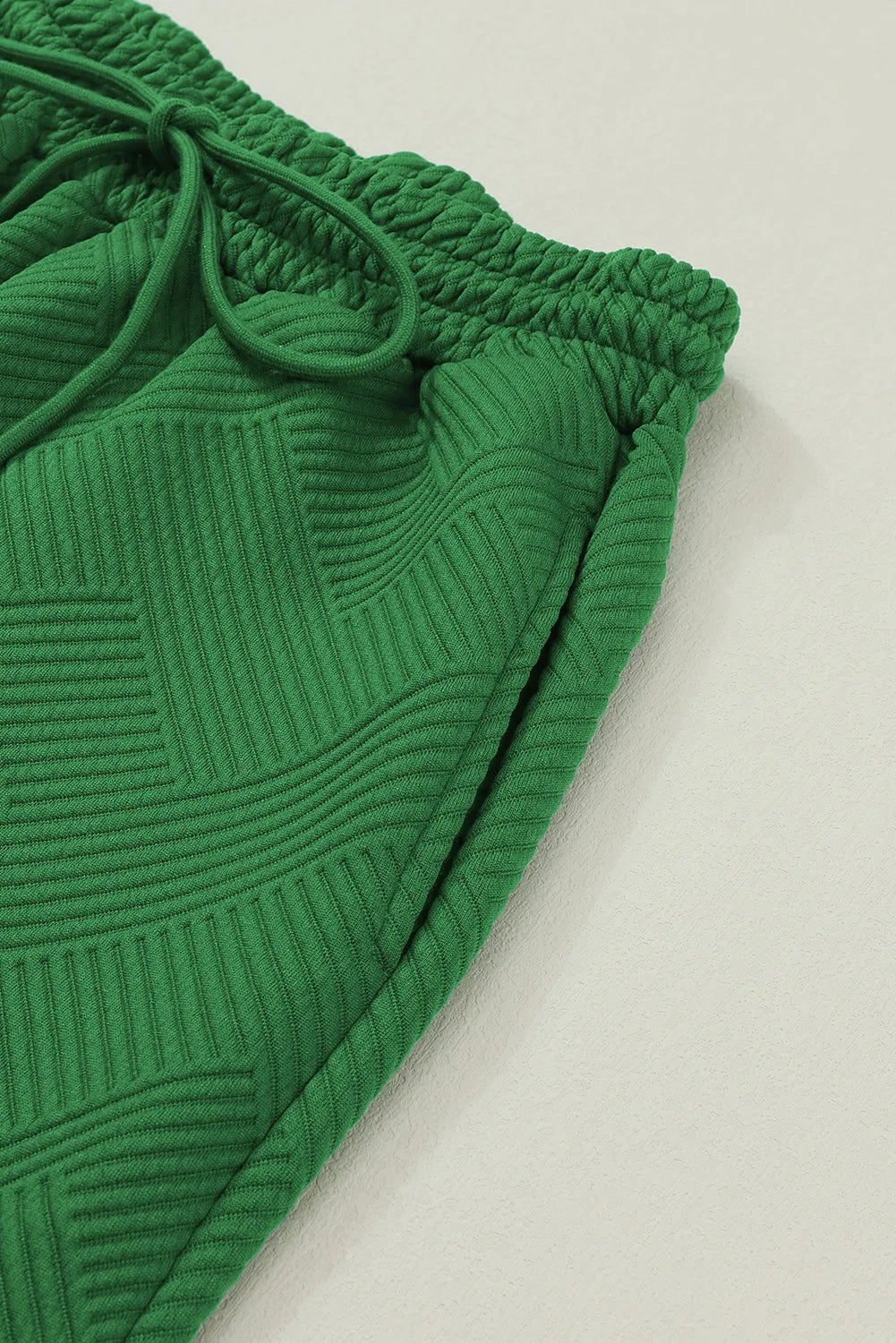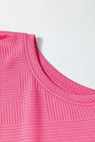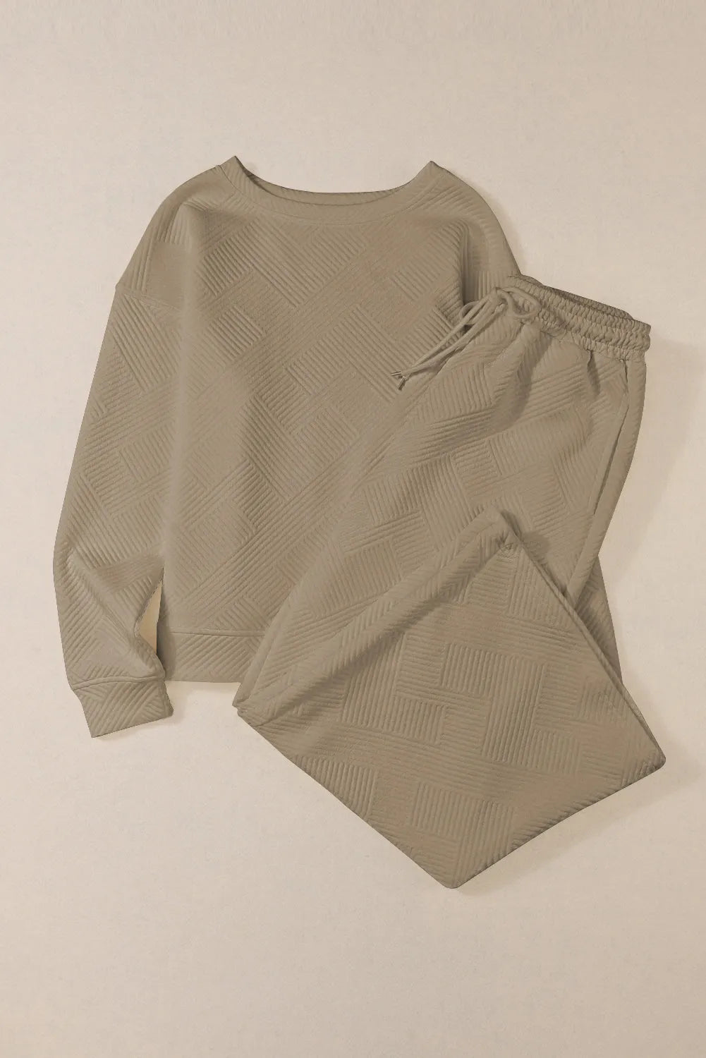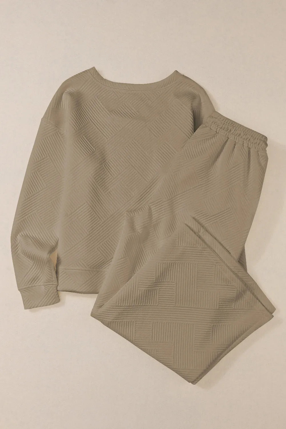 - The textured fabric adds a unique touch, adding visual interest to the outfit. The top is designed with a round neck and the pants have an elastic waistband for a comfortable fit.