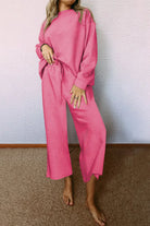 Black Textured Loose Slouchy Long Sleeve Top and Pants Set
